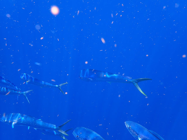After all my reading about the fish loving to take up under floating objects and years of sailing, this was the first time I had actually seen mahi mahi (aka dolphin fish or dorado) in the water!